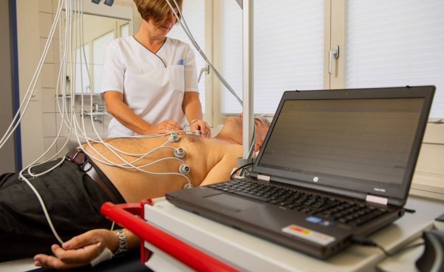 In der kardiologischen Rehabilitation behandeln wir Patientinnen und Patienten nach einem akuten Ereignis (z. B. Herzoperation, Herzinfarkt) oder bei chronischen Erkrankungen (Herzmuskelschwäche, Herzrhythmusstörungen). Wir unterstützen Sie darin, in Ihren gewohnten Alltag zurückzukehren und Ihre Leistungsfähigkeit zu verbessern.