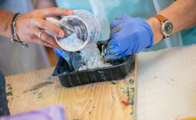 Unsere Therapien finden in Gruppen statt. Wir bieten Malen, Collagieren und plastisches Gestalten mit vielfältigen Materialien an.